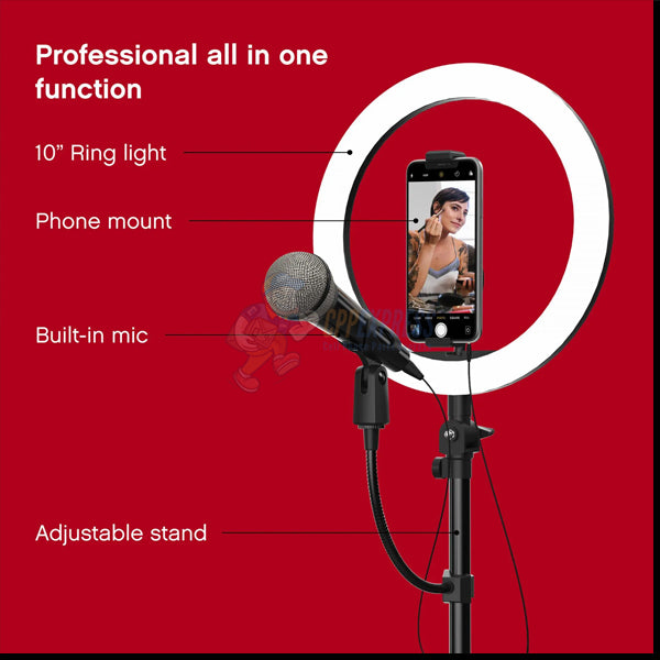 - The high-quality microphone and adjustable stand take your live audio and recordings to the next level, while the built-in smartphone mount and flexible gooseneck adjust for the best camera angles every time.