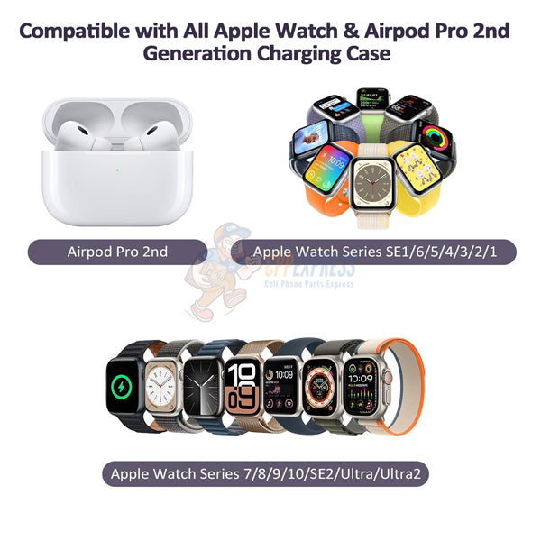 - Wide Compatibility: Designed for Apple Watch Series 7, Series 8, Ultra, and compatible (at standard charge speed) with Series 6, SE, 5, 4, 3, 2, and 1. Also works with MagSafe-compatible AirPods Pro 2.