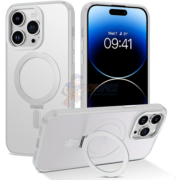 iPhone 15 Pro Shockproof Magnetic Case With Invisible Stand Holder White